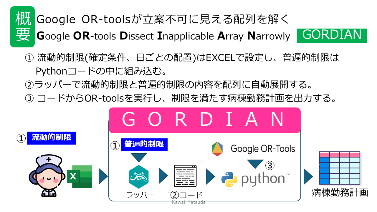 谷田病院は、この問題にアルゴリズムとDXで挑むことを決め、Google の数理最適化エンジン OR-Tools を活用したシステム「GORDIAN(ゴーディアン)」を2022年より開発し、運用を進めています。